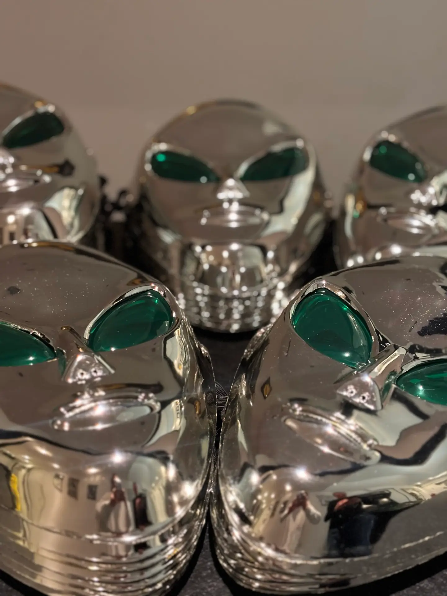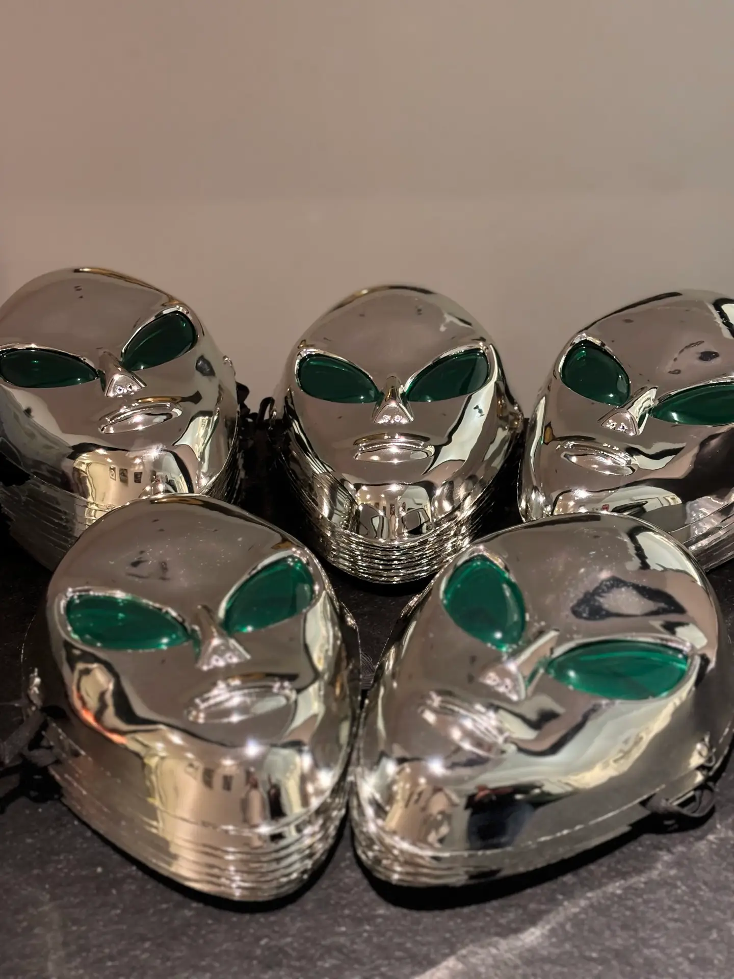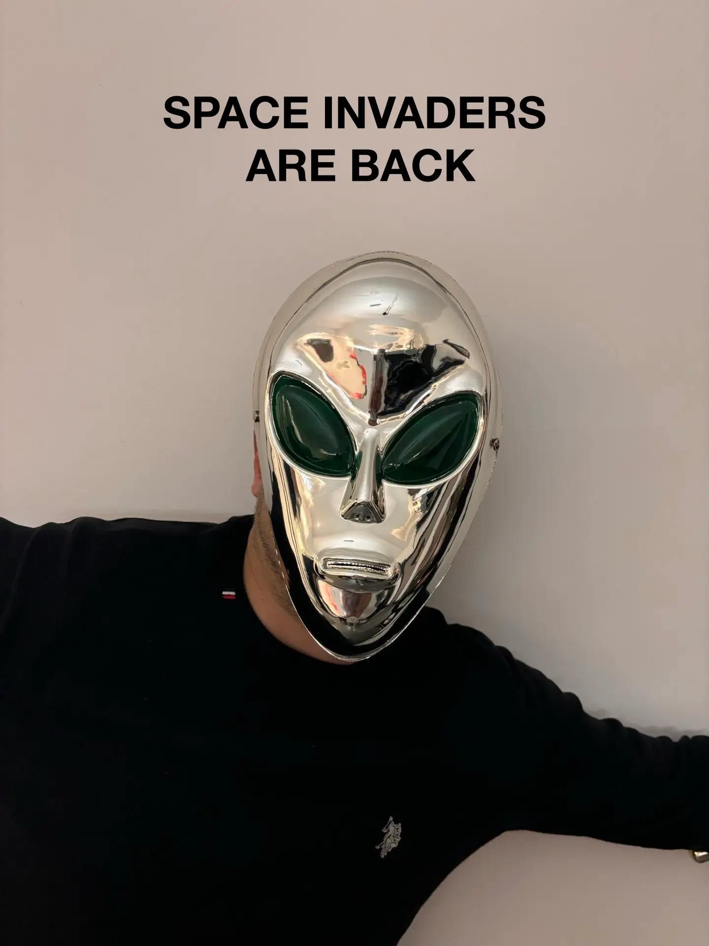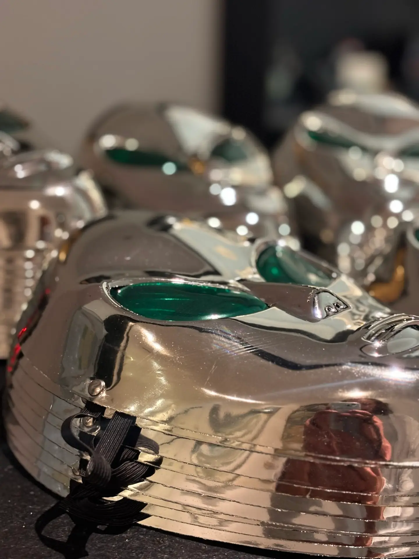 Le masque Space Invaders se distingue par sa finition chrome étincelante, qui reflète la lumière avec éclat et confère une aura futuriste et haut de gamme à celui qui le porte. Que ce soit sous les lumières des concerts ou dans un cadre plus intimiste, ce masque attire immédiatement tous les regards. Les yeux verts , soigneusement intégrés, ajoutent une touche de mystère et d’énergie, renforçant encore plus son esthétique futuriste.